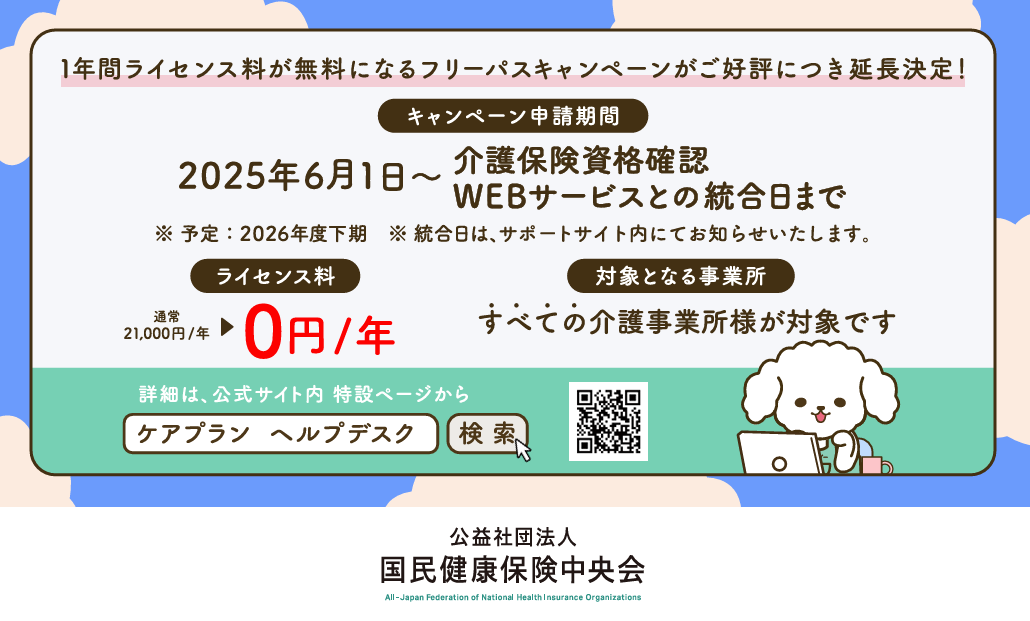 ケアプランデータ連携システムすべての機能を1年間無料でご利用できる期間限定のキャンペーンが実施中です。
